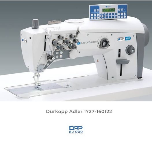 Итак! Durkopp Adler 1727-160122 - одноигольная машина с плоской платформой челночного стежка и нижним игольным продвижением, со встроенным в голову приводом с блоком управления DAC classic и пультом управления OP1000 для легких и средних материалов. Стандартно машина оснащена электромагнитным устройством обрезки нити, электро-пневматическим устройством закрепки шва и подъемником швейной лапки.